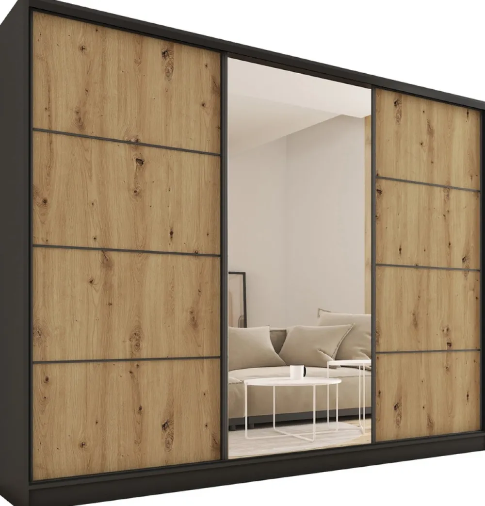 Nasza szafa przesuwna z lustrem o szerokości 280 cm to synonim stylu, przestronności i funkcjonalności. Wybierz mebel, który nie tylko pomoże Ci zorganizować przestrzeń, ale także doda elegancji Twojemu wnętrzu. Inwestując w tę szafę, wybierasz jakość, komfort i nowoczesny design. Spraw, aby Twoje wnętrze stało się miejscem, gdzie funkcjonalność spotyka się z estetyką na najwyższym poziomie.