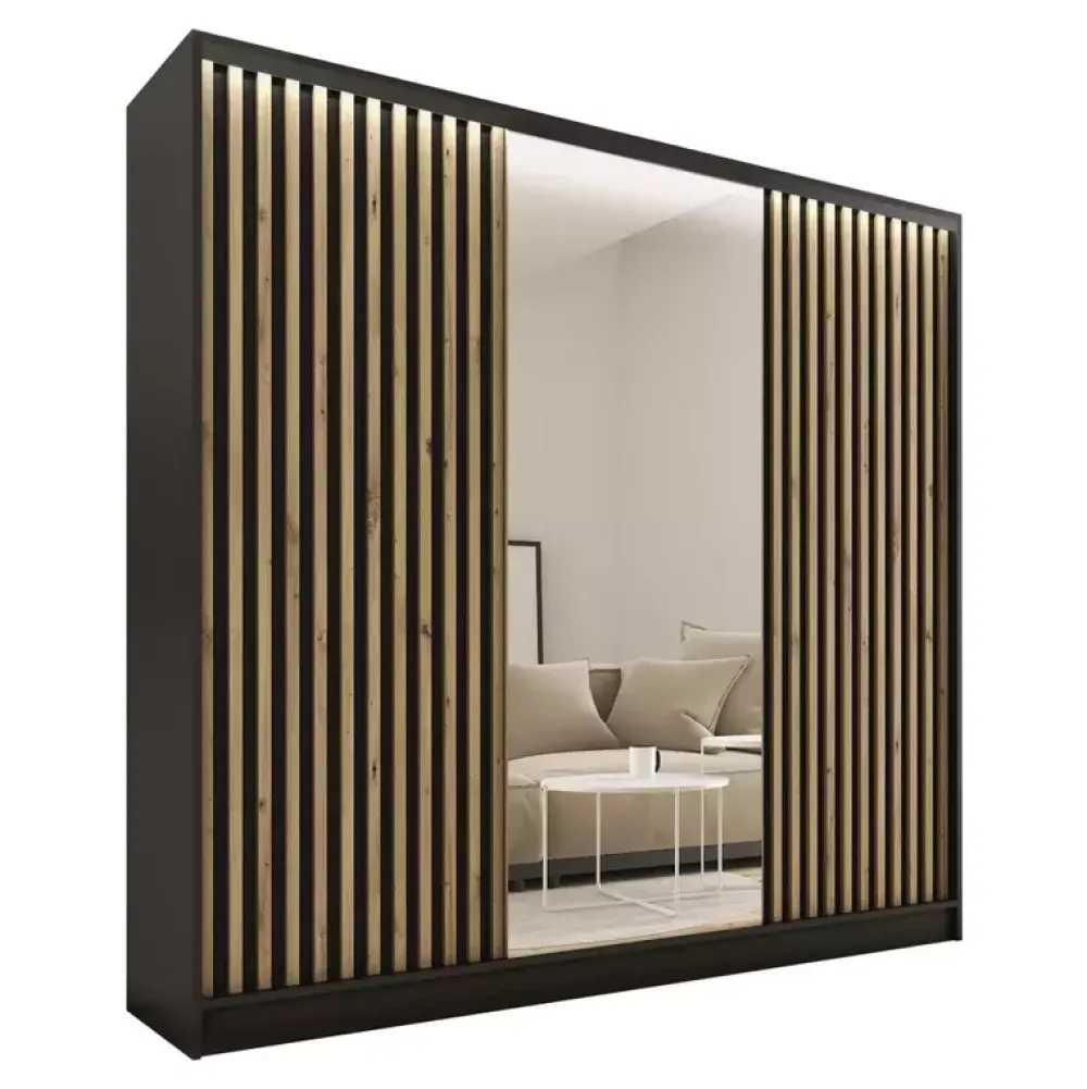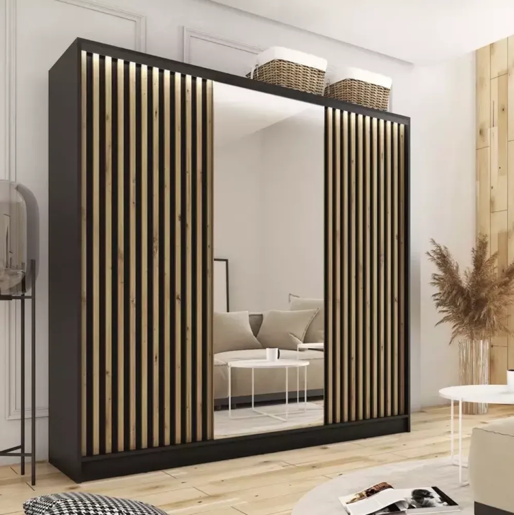Zestawy Mebli Do Przedpokoju|Szafy Trzydrzwiowe>BROMARKT Pojemna szafa przesuwna z lustrem lamele LOFT 200 cm