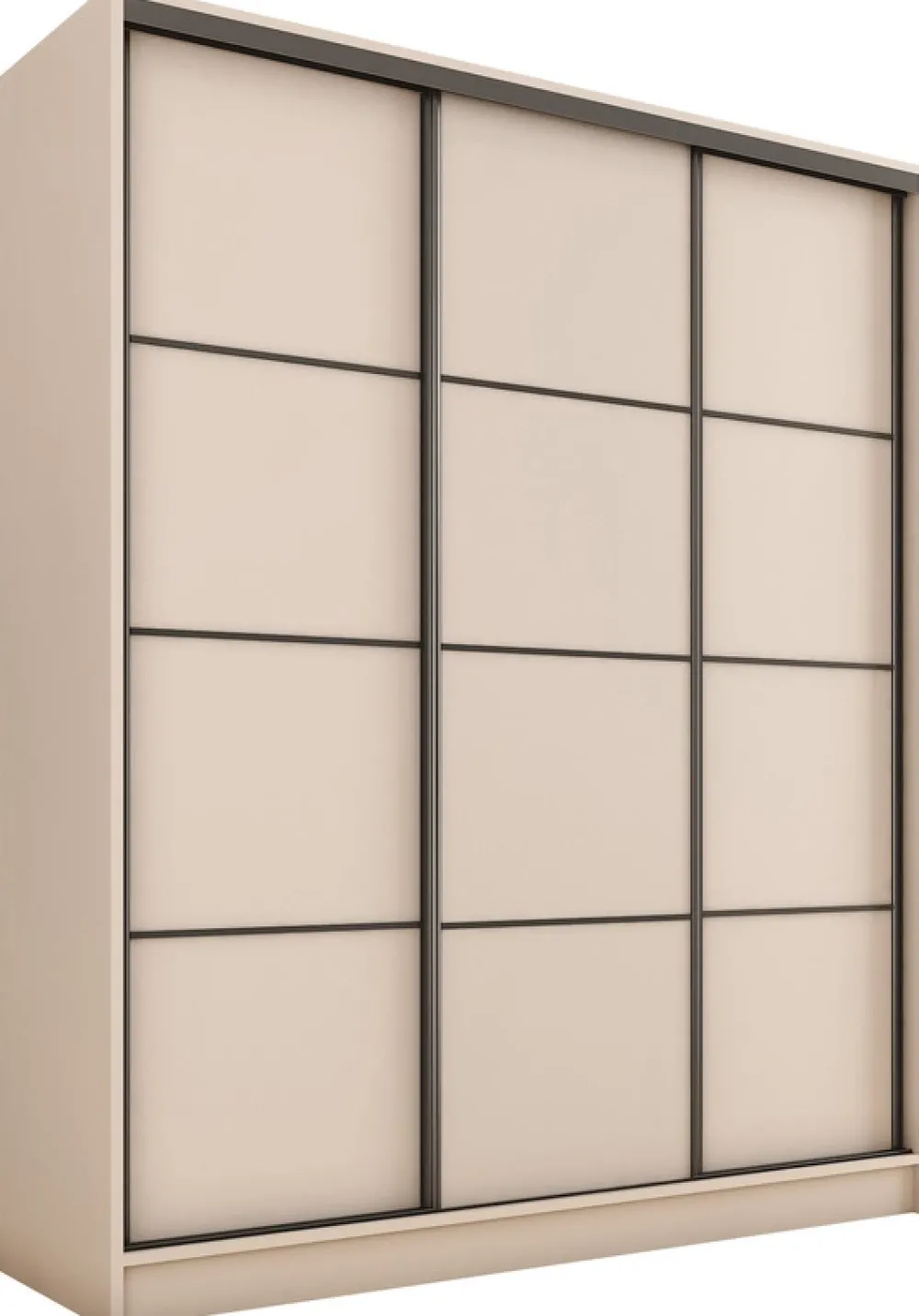 - Szafa po rozpakowaniu posiada gładki front. W zestawie dołączamy listwy widoczne na wizualizacji, które należy przykleić samodzielnie wraz z dołączonym szablonem. W przypadku rezygnacji z przyklejenia listw fronty pozostaną gładkie.