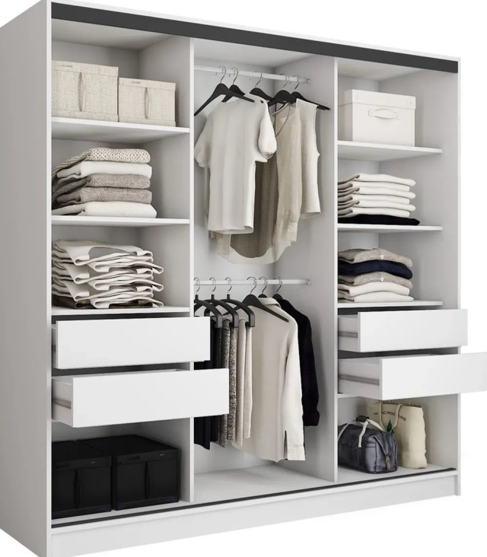 Nasza szafa przesuwna 200 cm to więcej niż tylko mebel – to sposób na zorganizowanie przestrzeni i dodanie stylu Twojemu wnętrzu. Wybierz produkt, który łączy w sobie funkcjonalność, wytrzymałość i nowoczesny design. Stwórz przestrzeń, która działa na Twoją korzyść każdego dnia.