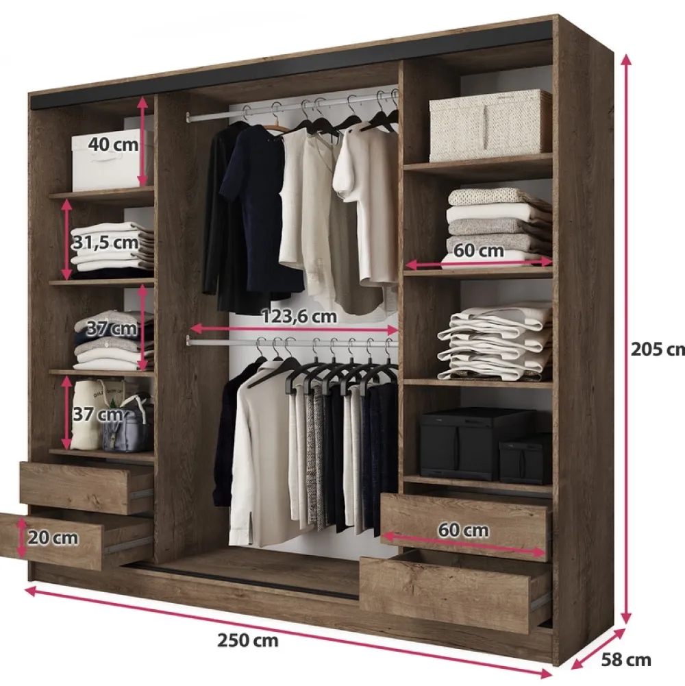 Nasza szafa przesuwna to połączenie funkcjonalności, elegancji i trwałości. Jej przemyślany design i praktyczne rozwiązania sprawią, że każdego dnia będziesz cieszyć się wygodą i stylem, jakie wnosi do Twojego wnętrza.