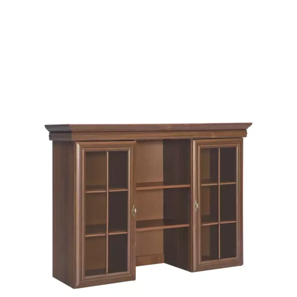 - Nadstawka komody KOLONIA pozwala stworzyć z komody pełnoprawną oraz pojemną witrynę. Nadstawka została wyposażona w przeszklone drzwi po lewej oraz prawej stronie, za którymi znajdują się dwie półki oraz otwarte półki w centralnej części.
