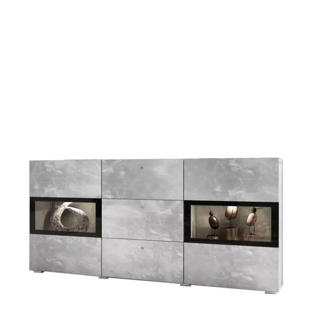 Kolekcja BARRET to meble do salonu o wyjątkowo nowoczesnej stylistyce. Meblościanka z witrynami oraz półkami, komoda z oszklonymi drzwiczkami, stolik kawowy czy dodatkowo dostępne szafki rtv, pozwolą skomponować nowoczesny salon, który przykuje uwagę każdego. Meble BARRET wykonano z dbałością o szczegóły, co przekłada się na jakość ich użytkowania. Mnogość kolorów to z pewnością mocna strona tej kolekcji. Kolory takie jak dąb Artisan w połączeniu z czarnym czy dąb San Remo jasny są świetną propozycją dla rustykalnych aranżacji wnętrz, natomiast elementy w kolorach betonu jasnego oraz ciemnego to meble w stylu industrialnym. Nie zabrakło również białego połysku, który jest ponadczasowy i często wybierany przez wielu użytkowników. Przy takim zestawieniu brył i kolorów każdy znajdzie w tej kolekcji coś dla siebie, a meble podkreślą nowoczesny wygląd każdego wystroju.