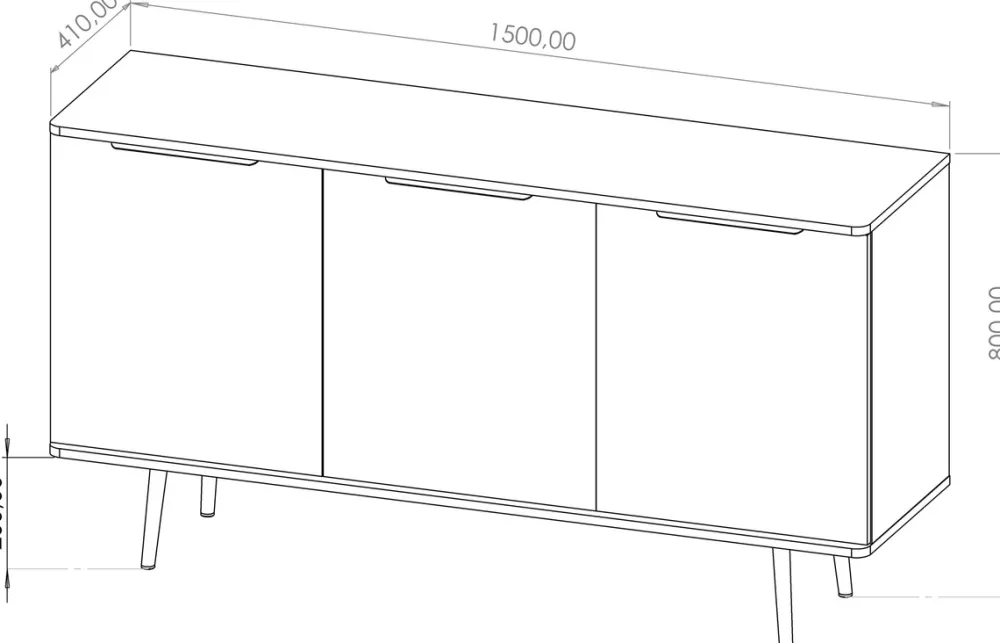 - Komoda do salonu PULSE została wyposażona w trzy drzwi z cichym domykiem, za każdymi drzwiami znajduje się półka na ubrania. Komoda stoi na wysokich metalowych nóżkach, które umożliwiają sprzątanie pod meblem. Komoda posiada obrzeża ABS.
