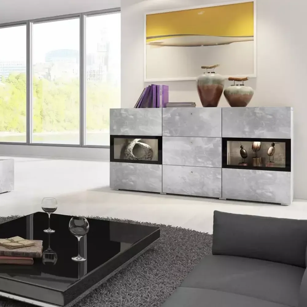Kolekcja BARRET to meble do salonu o wyjątkowo nowoczesnej stylistyce. Meblościanka z witrynami oraz półkami, komoda z oszklonymi drzwiczkami, stolik kawowy czy dodatkowo dostępne szafki rtv, pozwolą skomponować nowoczesny salon, który przykuje uwagę każdego. Meble BARRET wykonano z dbałością o szczegóły, co przekłada się na jakość ich użytkowania. Mnogość kolorów to z pewnością mocna strona tej kolekcji. Kolory takie jak dąb Artisan w połączeniu z czarnym czy dąb San Remo jasny są świetną propozycją dla rustykalnych aranżacji wnętrz, natomiast elementy w kolorach betonu jasnego oraz ciemnego to meble w stylu industrialnym. Nie zabrakło również białego połysku, który jest ponadczasowy i często wybierany przez wielu użytkowników. Przy takim zestawieniu brył i kolorów każdy znajdzie w tej kolekcji coś dla siebie, a meble podkreślą nowoczesny wygląd każdego wystroju.