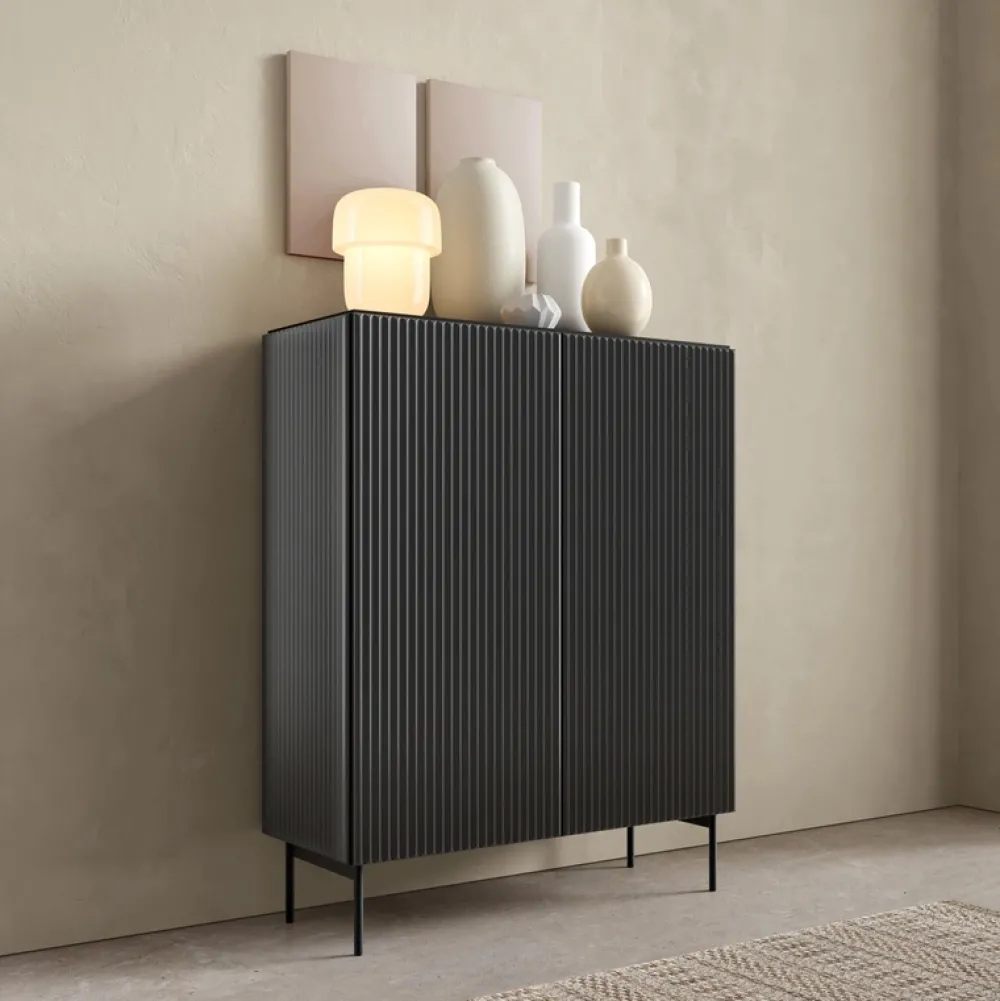 Komoda wysoka ryflowana MEZZO czarna – styl i porządek w eleganckiej formie