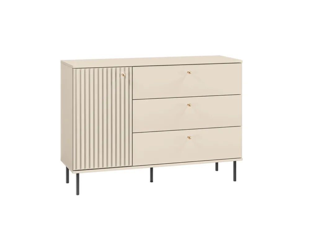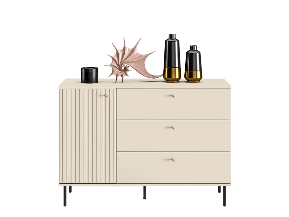 - Nóżki wykonane z metalu w kolorze czarnym umożliwiają wygodne odkurzanie pod komodą.
