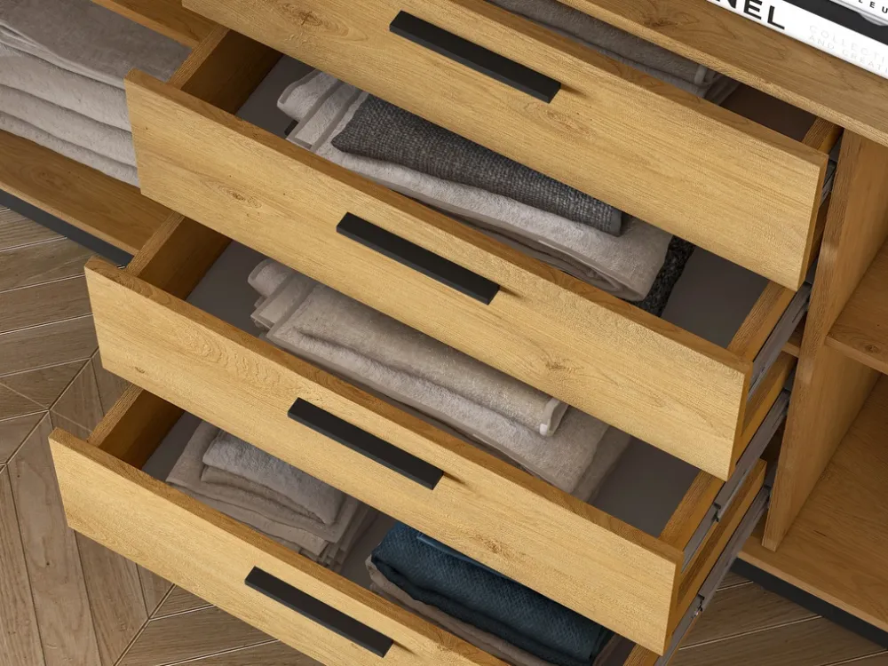 - Praktyczne szuflady z pełnym wysuwem – łatwy dostęp do całej zawartości bez potrzeby wyjmowania wszystkiego po kolei