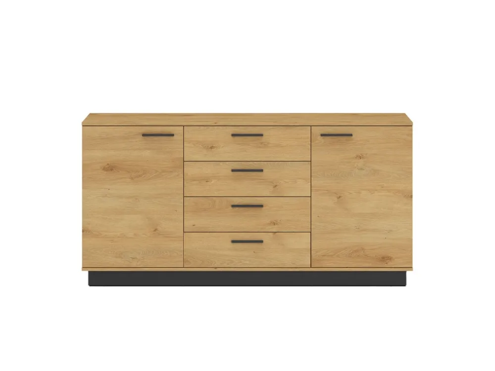 - Komoda MONELLI 170 cm w kolorze dąb stylowy to loftowy mebel z czterema szufladami i dwiema szafkami. Pełny wysuw, cichy domyk i trwałe wykończenie czynią ją idealnym wyborem do salonu, sypialni lub przedpokoju.