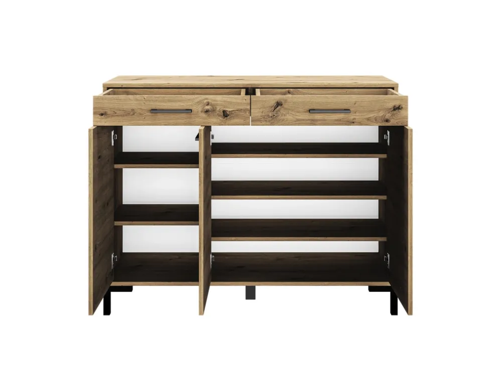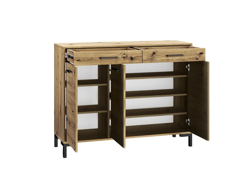 Trzydrzwiowa komoda do salonu to doskonały wybór dla osób ceniących sobie funkcjonalność, nowoczesny design i wysoką jakość wykonania. Wprowadź do swojego wnętrza harmonię i porządek z naszym wyjątkowym meblem, który stanie się ozdobą każdego salonu.