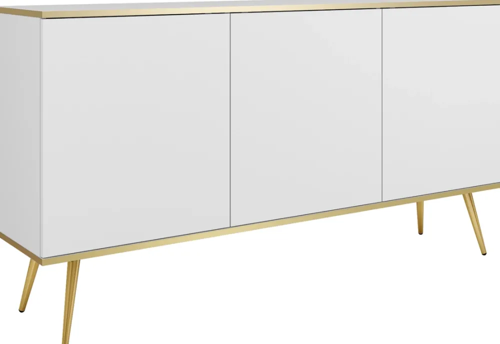 - Komoda trzydrzwiowa 160 cm ORVIETO charakteryzuje się swoimi wysokimi nóżkami, które wykonano z metalu. Komoda posiada trzy drzwi z mechanizmem otwierania push to open. Za każdymi drzwiami znajdują się dwie półki na ubrania lub akcesoria.