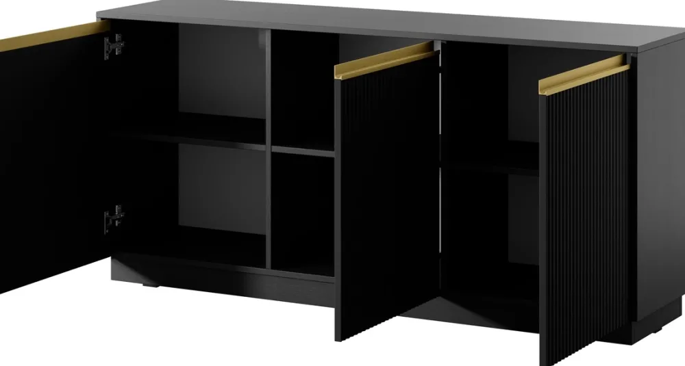 Komoda 154 cm to doskonały wybór do przestronnych wnętrz, w których elegancja idzie w parze z funkcjonalnością. Dzięki wyrafinowanemu wzornictwu, frezowanym frontom i złotym uchwytom, komoda ta stanie się wyjątkową ozdobą każdego salonu, sypialni czy jadalni, dodając wnętrzu nowoczesnego charakteru i odrobinę luksusu.