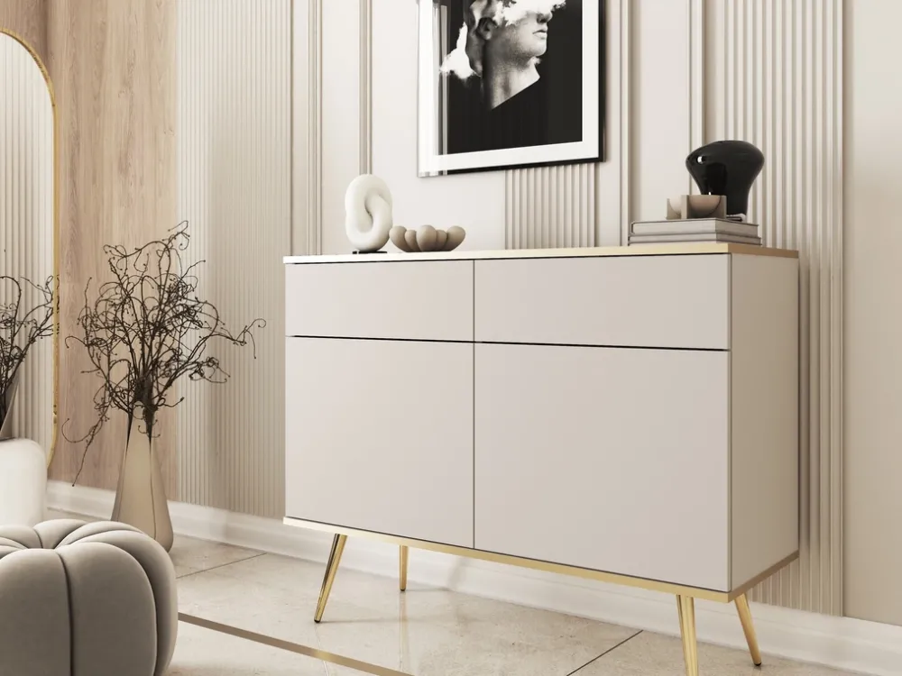 Zestawy Mebli Do Salonu|Komody>PIASKI Mała dwudrzwiowa komoda z szufladami 107 cm ORVIETO beż