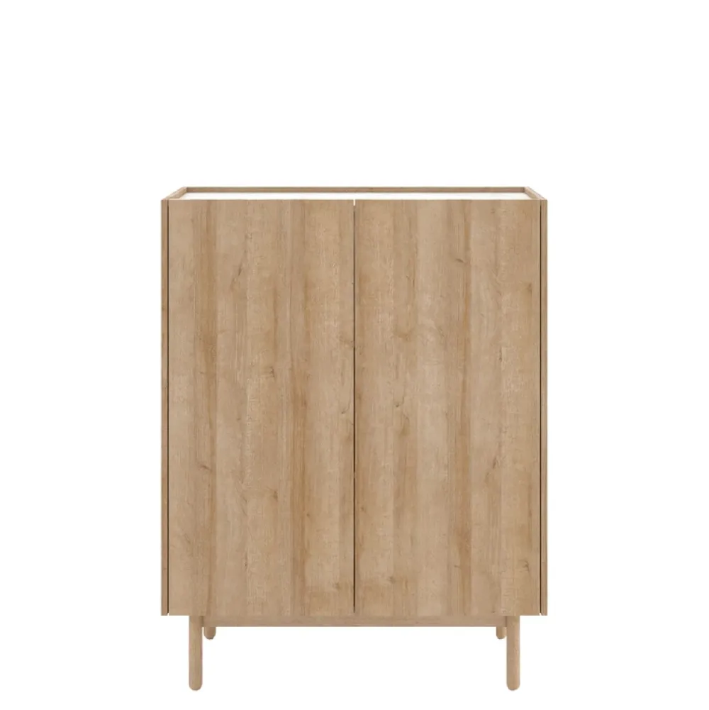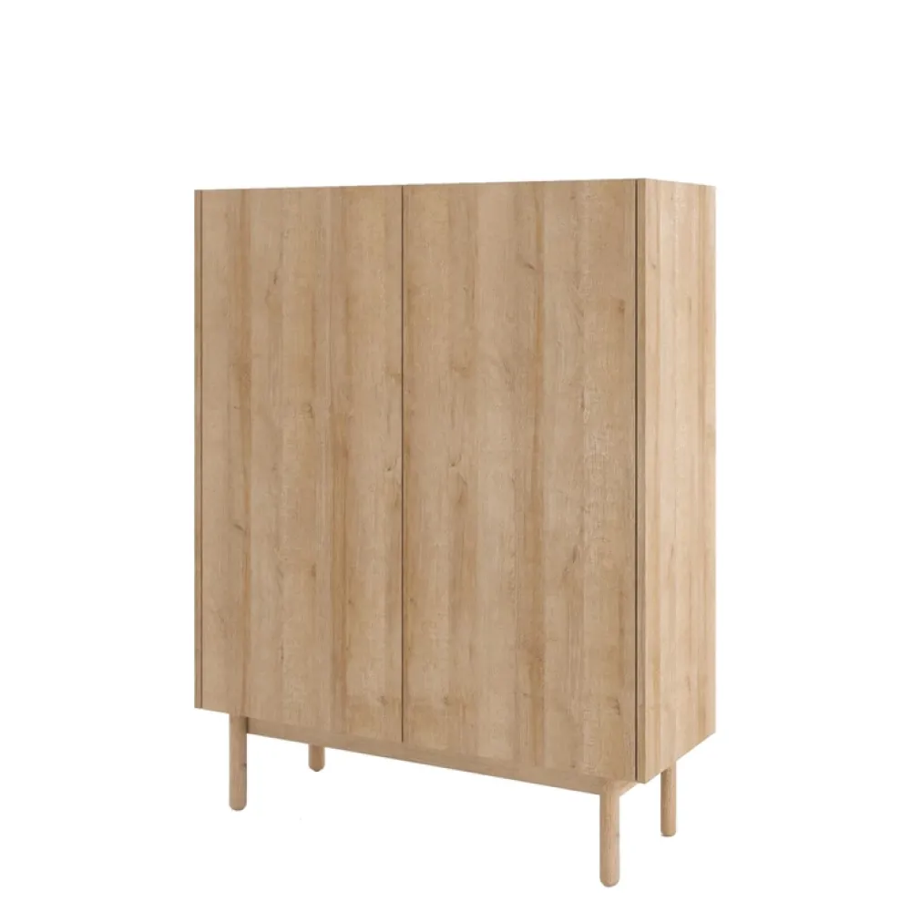 Przedstawiamy wysoką komodę do salonu BURGOS, która doskonale łączy styl boho z nowoczesną elegancją. Wyjątkowy charakter tego mebla podkreślony jest kolorem dębu riviera, który wprowadza do wnętrza ciepło i naturalny blask.