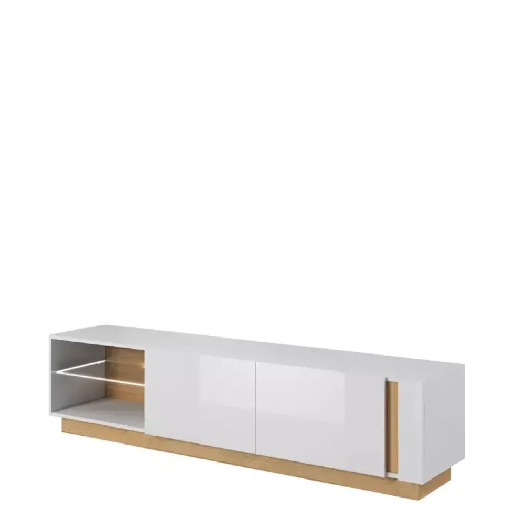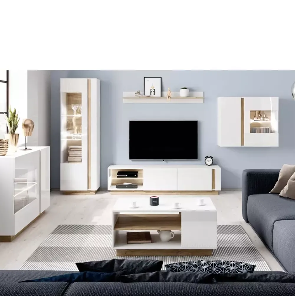Meble biały połysk w połączeniu ze wstawkami w kolorze dąb grandson wprowadzą do wnętrza odrobinę świeżości i przyjemnego, niepowtarzalnego klimatu.