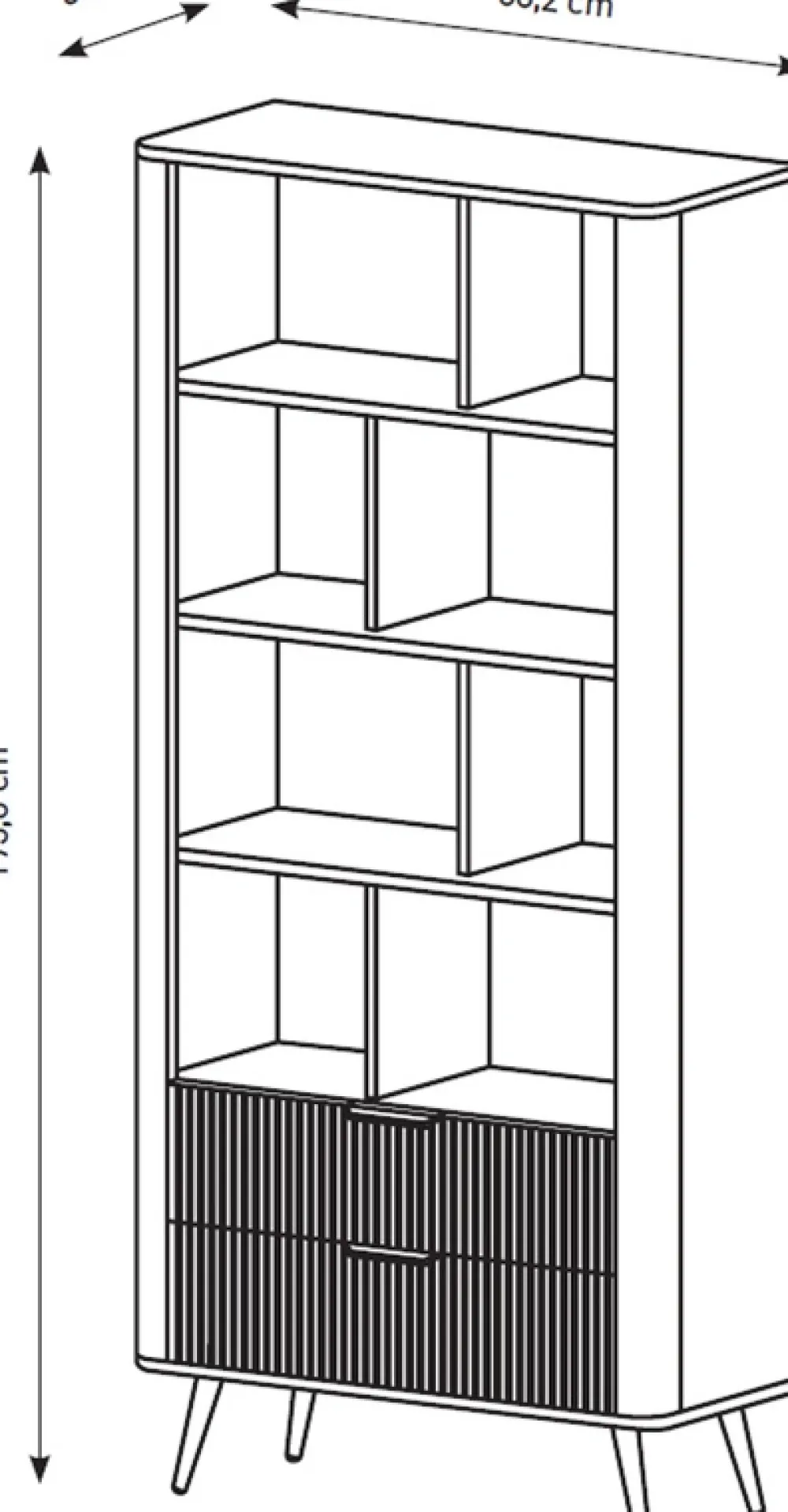 - Regał: 88 × 38 × 193 cm (szer. × gł. × wys.)