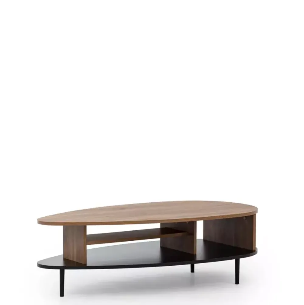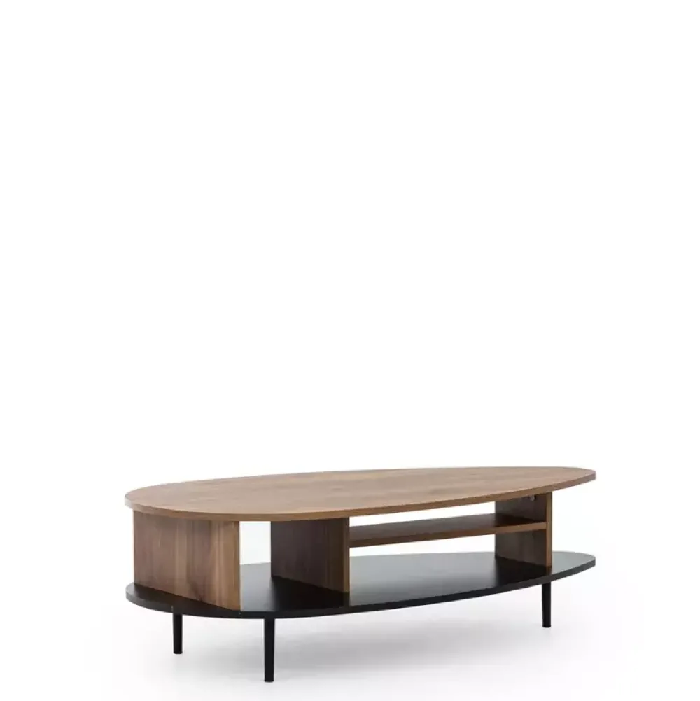 - Ława do salonu z dwupoziomową bryłą, oraz dodatkową półką na piloty, gazety czy inną elektronikę.