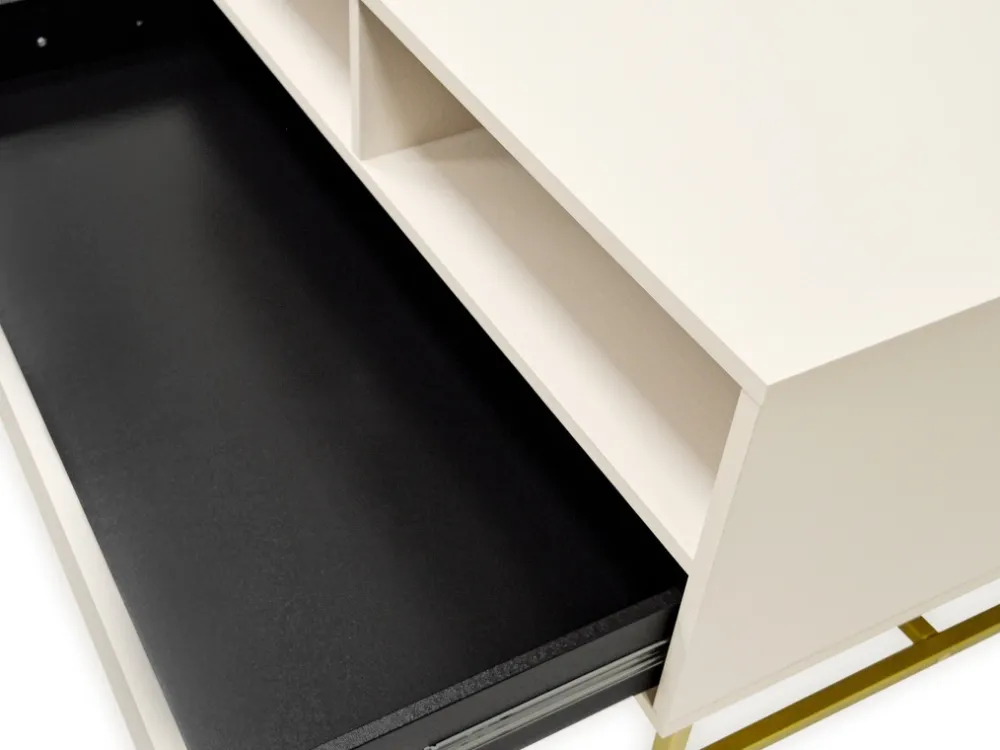 Stolik wyposażony jest w praktyczną szufladę osadzoną na prowadnicach kulkowych u dołu. To rozwiązanie gwarantuje płynne i ciche otwieranie oraz zamykanie szuflady, co znacząco zwiększa komfort użytkowania. W szufladzie możesz schować różne przedmioty, które nie muszą być widoczne na co dzień, dzięki czemu zachowasz porządek i estetykę wnętrza.