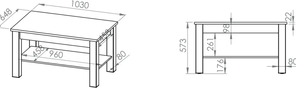 - Stolik kawowy 65×103 cm AVO to świetna dekoracja oraz miejsce, które pozwala na odłożenie kawy lub herbaty. Stolik został wykonany z płyty laminowanej 16 mm, posiada również półkę pod blatem, która pozwala na odłożenie akcesoriów.