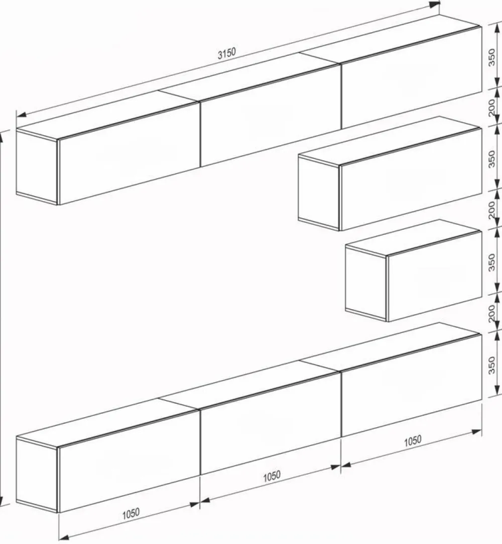 - Zestaw eleganckich mebli o szerokości 315 cm