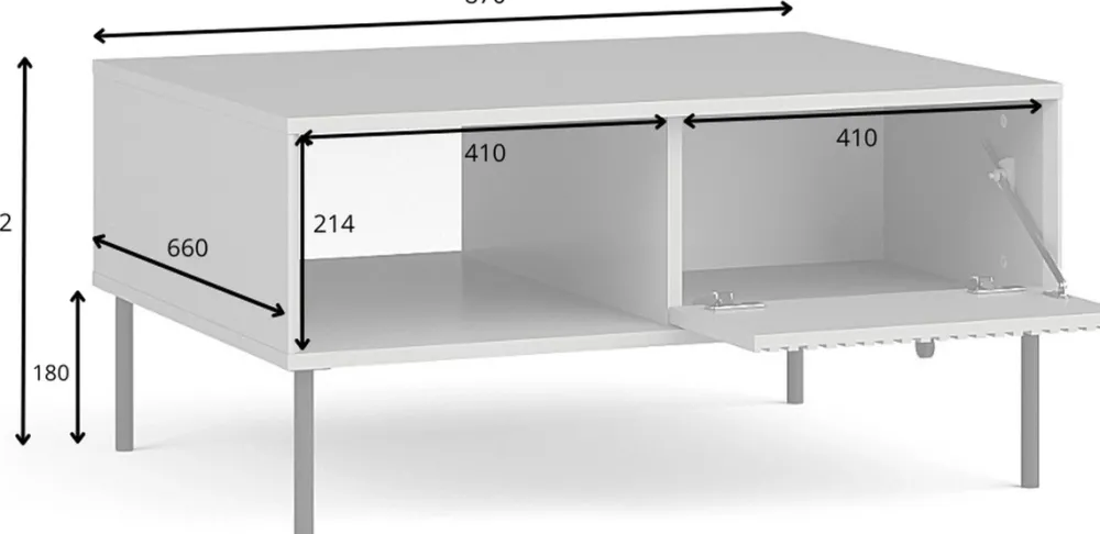 - Stolik kawowy: szerokość 87 cm, wysokość 43,2 cm, głębokość 66 cm