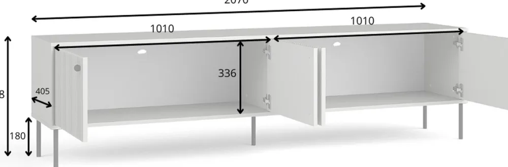 - Szafka RTV 4D: szerokość 207 cm, wysokość 54,8 cm, głębokość 41 cm