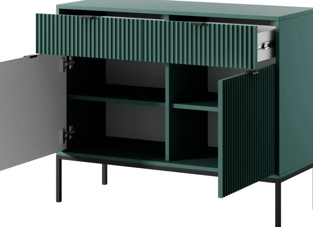 - Ryflowane fronty zostały wykonane są z płyty MDF o grubości 18 mm. Posiadają widoczne przetłoczenia.