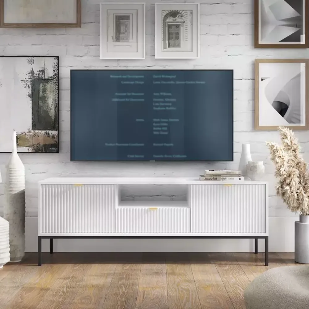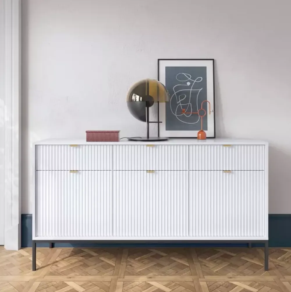 - Fronty mebli wykonane są z płyty MDF o grubości 18 mm, a dla lepszego efektu znajdują się na nich ryflowane fronty.