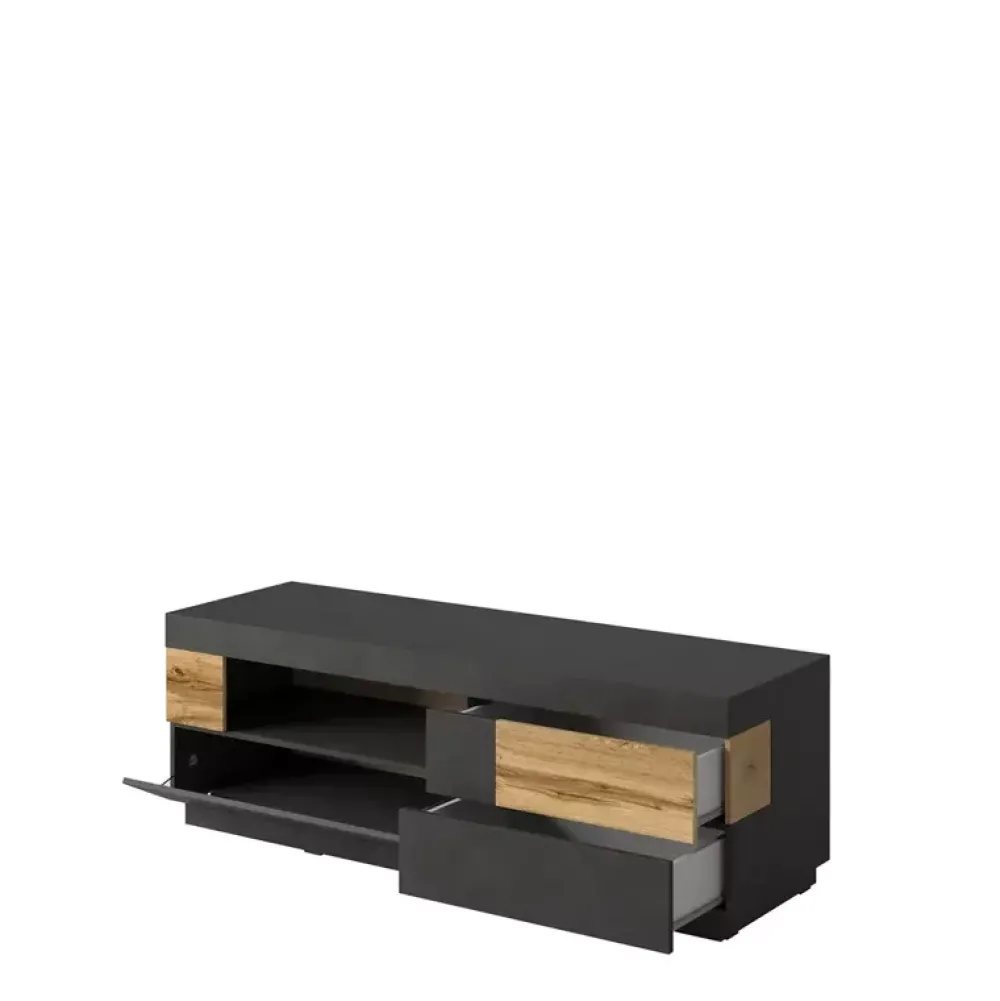 - Szafka rtv o szerokości 160 cm z szufladami i półkami.