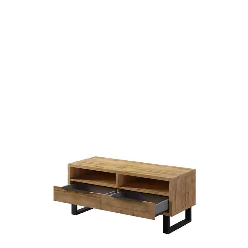 Szafka rtv loft wyposażona w dwie szuflady oraz półki.