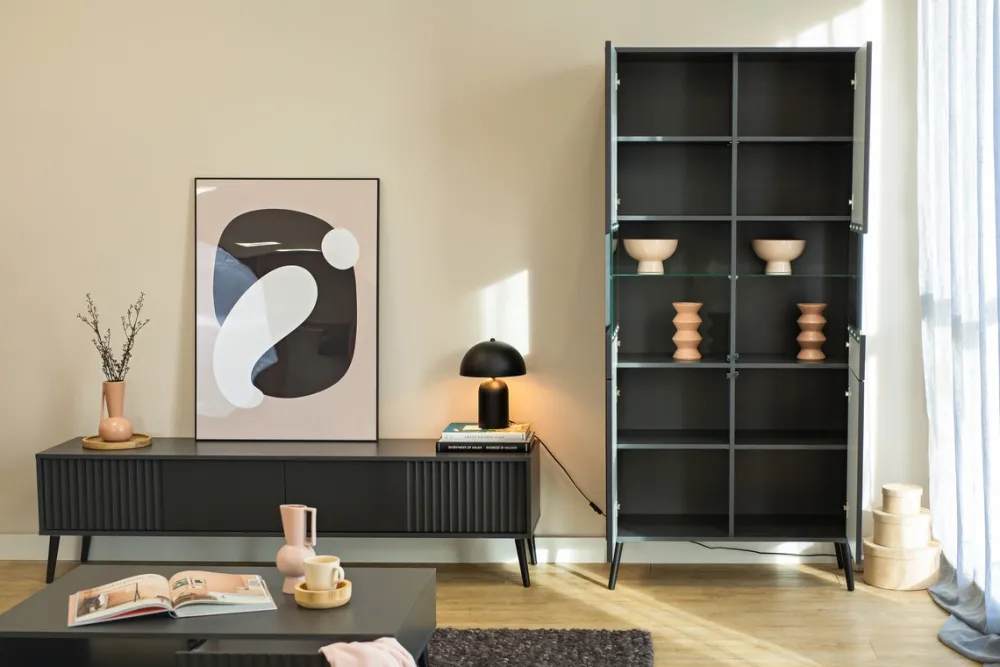 - Fronty z ryflowanego MDF – subtelny dekor, który dodaje meblowi głębi i wyrafinowania