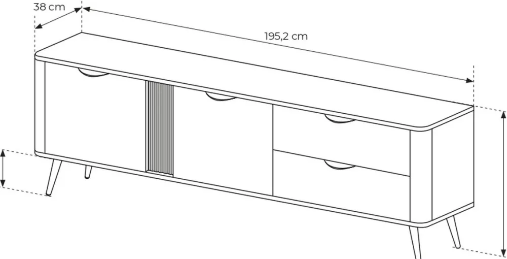 - Wymiary: szerokość 195 cm, wysokość 61 cm, głębokość 38 cm