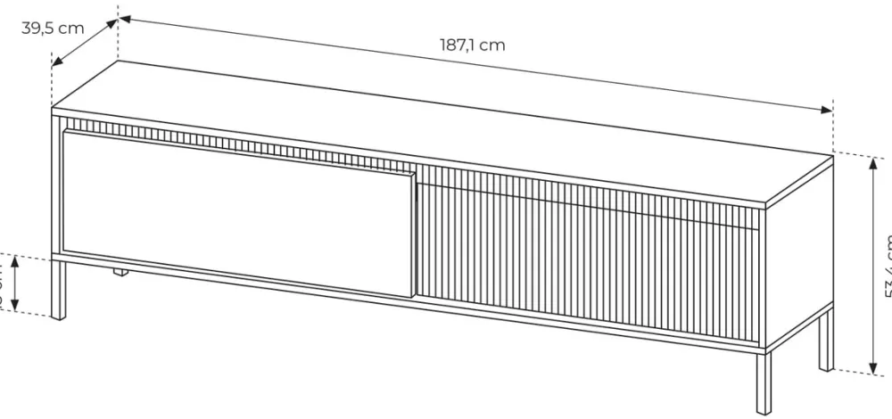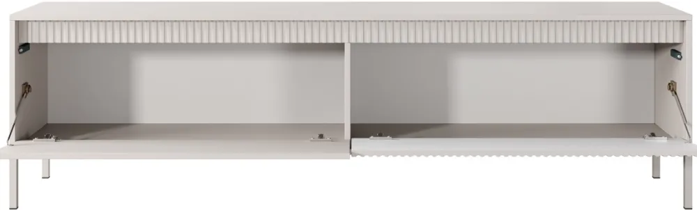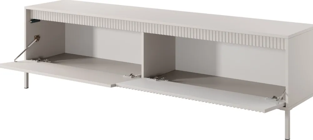 - Szafka RTV 187 cm SAREVO z frezowanymi frontami i wysokimi metalowymi nóżkami to stylowe i pojemne rozwiązanie do dużych salonów. Dwoje drzwi z półkami zapewnia doskonałą organizację sprzętu i dodatków RTV.