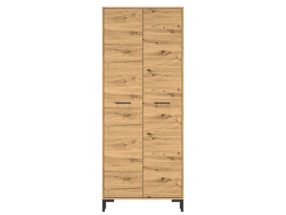 - Odkryj dwudrzwiową szafę NEVIO o szerokości 80 cm. Wykonana została w całości z płyty laminowanej, a jej krawędzie zabezpieczono dodatkowo okleiną ABS. Wewnątrz szafy znajdziemy dwie półki oraz drążek. Nogi i uchwyty zostały wykonane z tworzywa sztucznego
