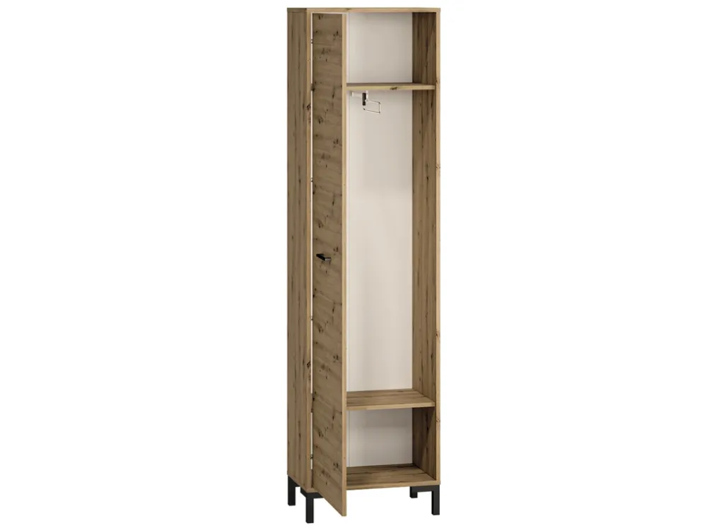 - Odkryjcie szafę NEVIO w kolorze dębu artisan. Wykonana z płyty laminowanej 16 mm, dodatkowo krawędzie zostały zabezpieczone okleina ABS. Możliwość montażu drzwi prawostronnie lub lewostronnie. Wewnątrz szafy znajdziemy trzy półki oraz drążek na wieszaki.
