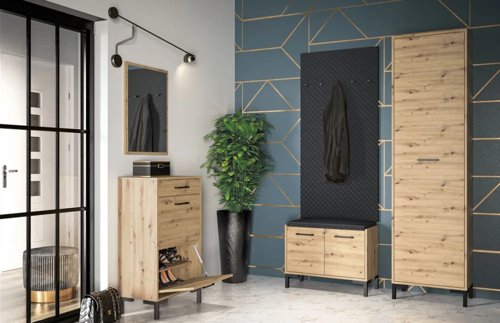 Przedstawiamy Państwu nowoczesną i elegancką szafę NEVIO do przedpokoju, wykonaną z wysokiej jakości płyty laminowanej. Jej wybarwienie w odcieniu dębu artisan nadaje wnętrzu przytulny i naturalny charakter, idealnie wpisując się w aktualne trendy wnętrzarskie.
