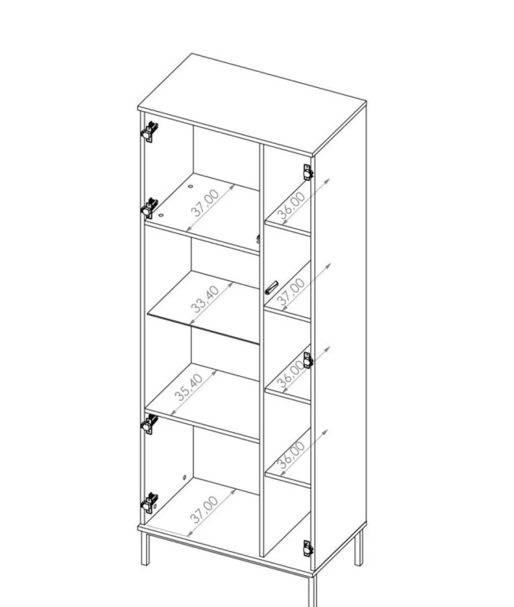 - Tył mebla wykonany z czarnej płyty HDF o grubości 3 mm.