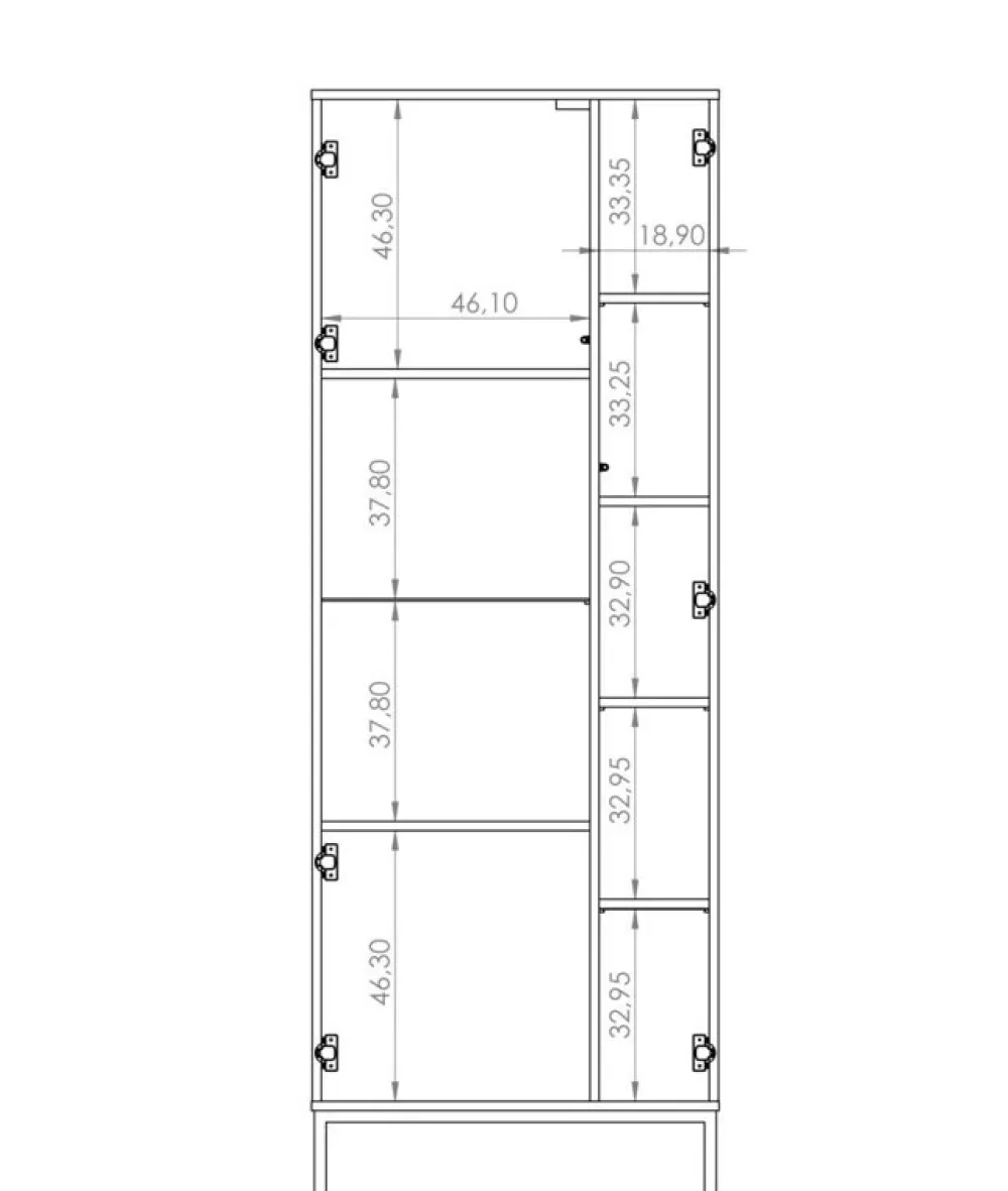 - Tył mebla wykonany z czarnej płyty HDF o grubości 3 mm.