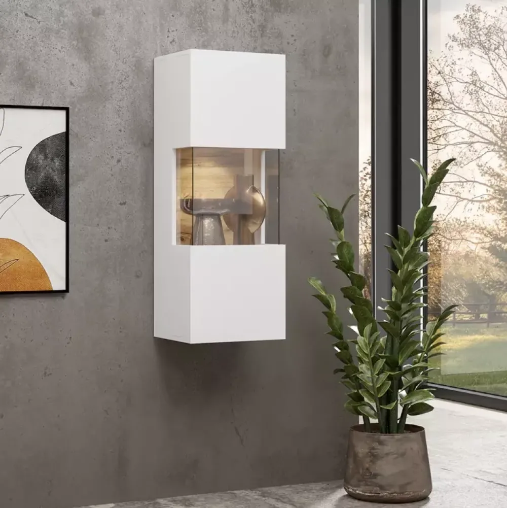 Witryna AVENTELI została wykonana w nowoczesnej oraz niepowtarzalnej stylistyce, dzięki której uczyni twój salon wyjątkowym oraz stylowym. Witryna posiada trzy poziomy wśród których dwa znajdują się za pełną częścią drzwi, na których twoje przedmioty zyskają odrobinę prywatności. Natomiast w centralnej części witryny swoje miejsce znalazła półka, na której twoje dekory oraz pamiątki nadają pomieszczeniu wyjątkowych oraz niepowtarzalnych akcentów stylistycznych.