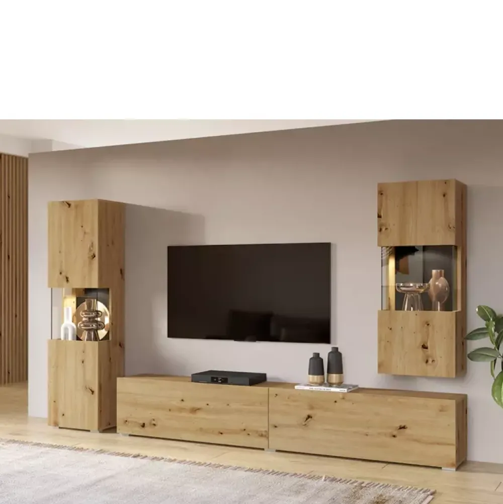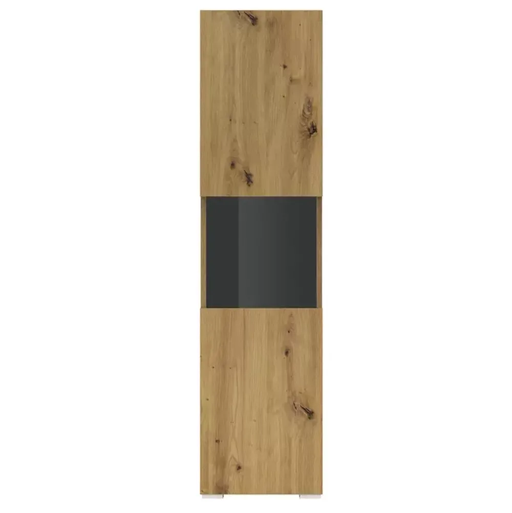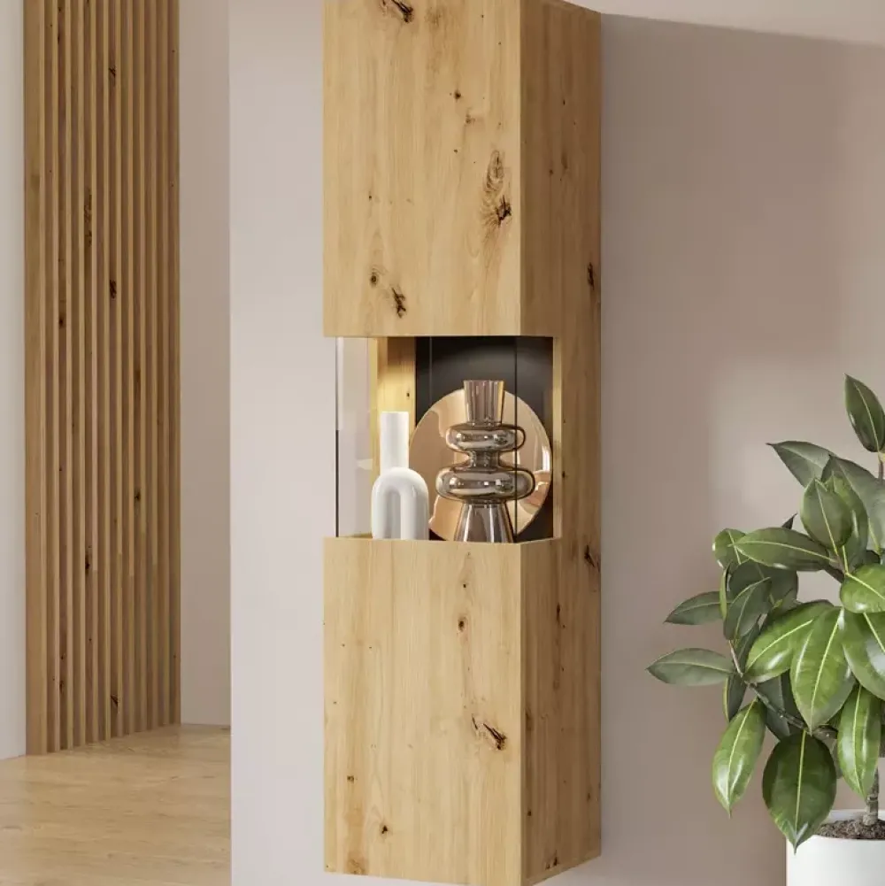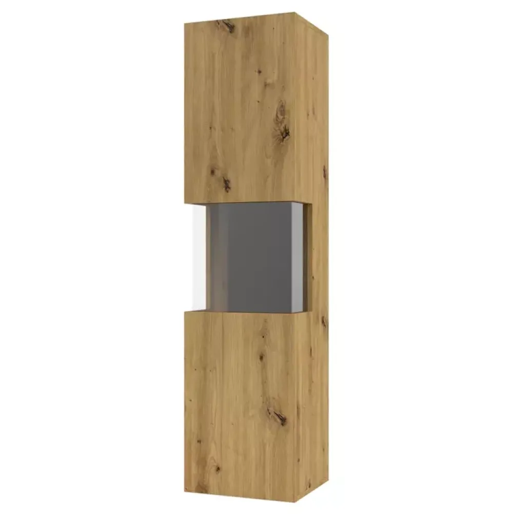 Witryna AVENTELI została wykonana w nowoczesnej oraz niepowtarzalnej stylistyce, dzięki której uczyni twój salon wyjątkowym oraz stylowym. Witryna posiada cztery poziomy znajdujące się za pełną częścią drzwi, które doskonale sprawdzą się do umieszczenia przedmiotów przeznaczonych do ukrycia. Natomiast przeszklona półka witryny doskonale sprawdzi się do umieszczenia drobnych dekorów lub książek. Dodatkowo witryna może pełnić funkcję wiszącą lub stojącą, o której możesz zdecydować podczas montażu.