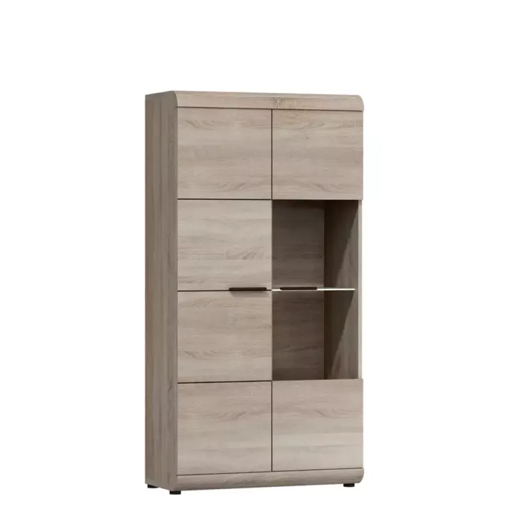 Meble zachwycą czystą formą i szlachetnością dekoru dąb sonoma. Nowoczesne witryny do salonu, komody z szufladami, szafy uchylne, stoliki kawowe, a może stół do jadalni? Kolekcja pozostawia wiele możliwości aranżacyjnych do przestronnego domu i niewielkiego mieszkania.