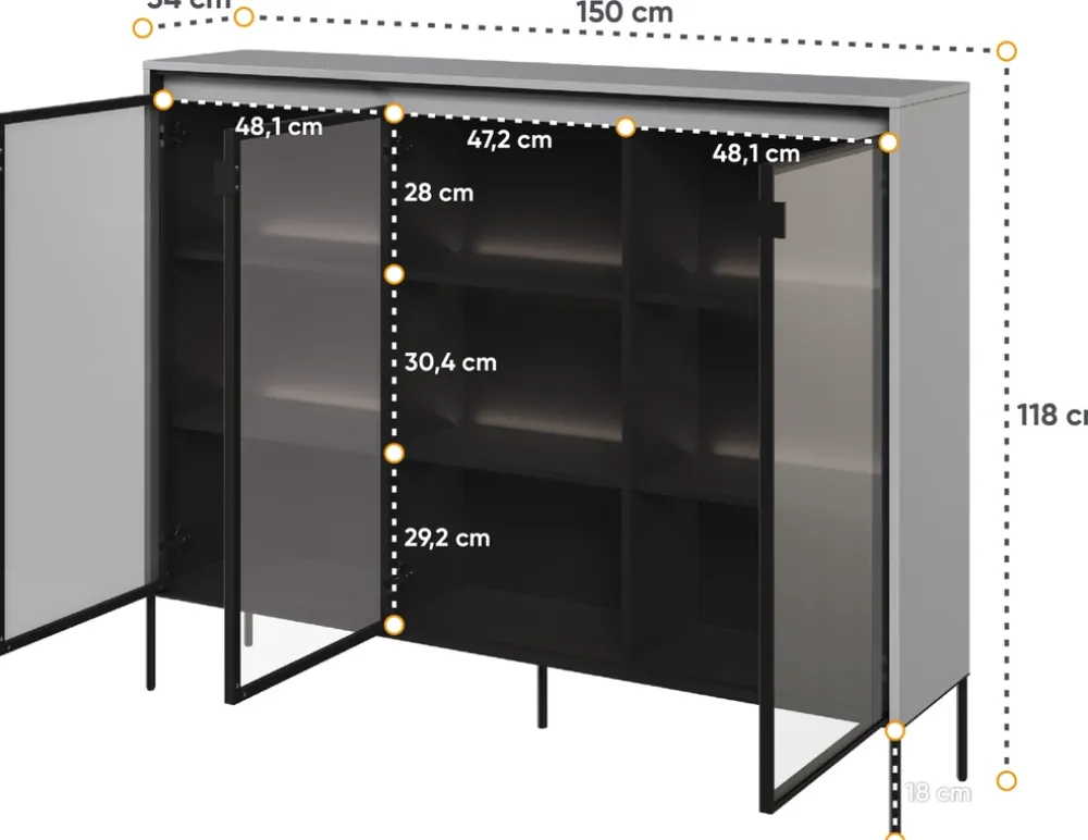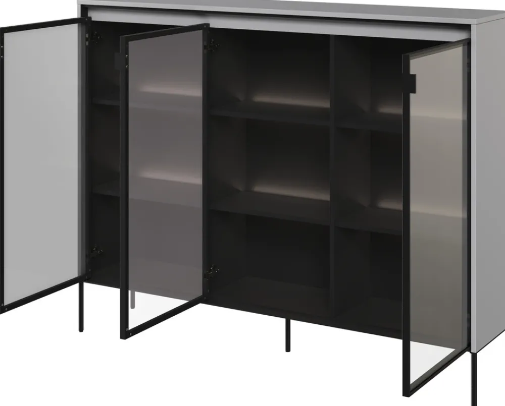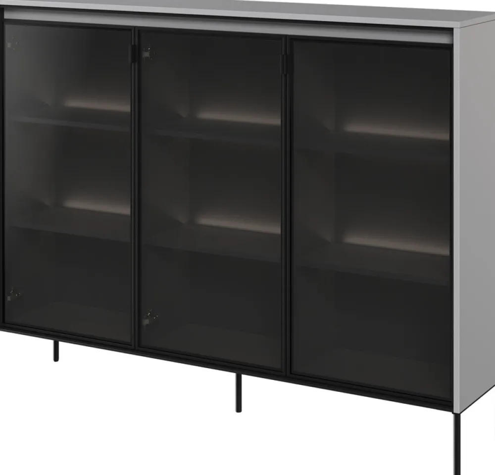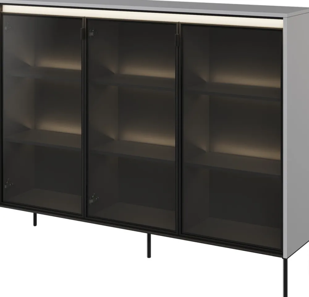 Zapraszamy do odkrycia elegancji i funkcjonalności naszej nowoczesnej witryny salonowej TREND, w subtelnym odcieniu szarości. Szerokość 150 cm sprawia, że ten praktyczny mebel jest idealnym rozwiązaniem do przechowywania Twoich ulubionych przedmiotów.