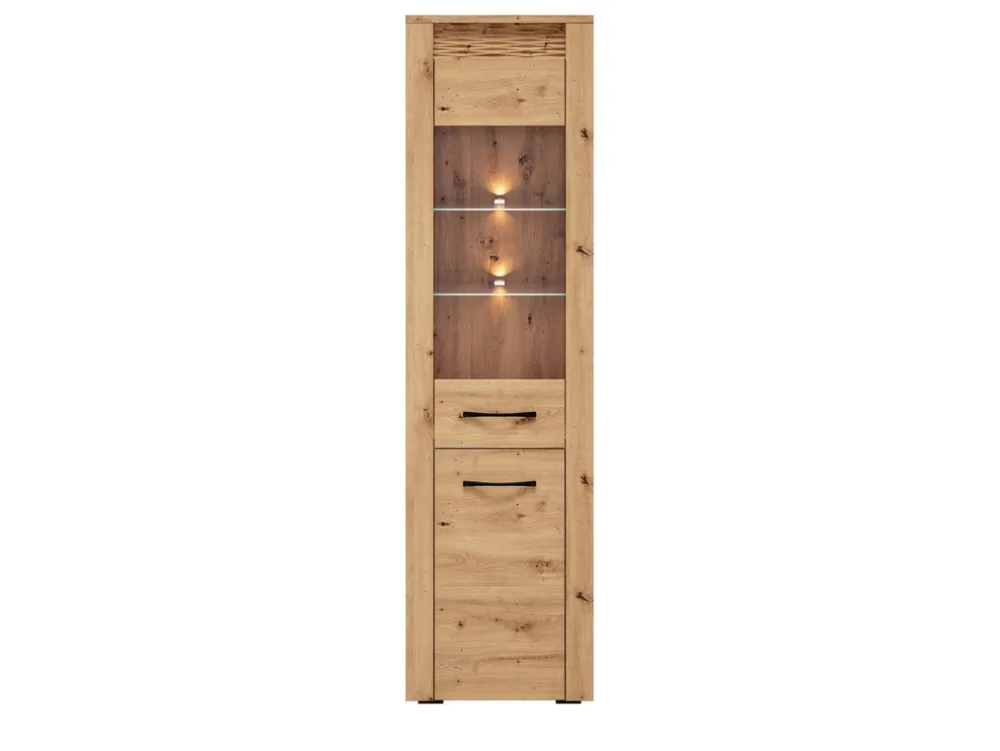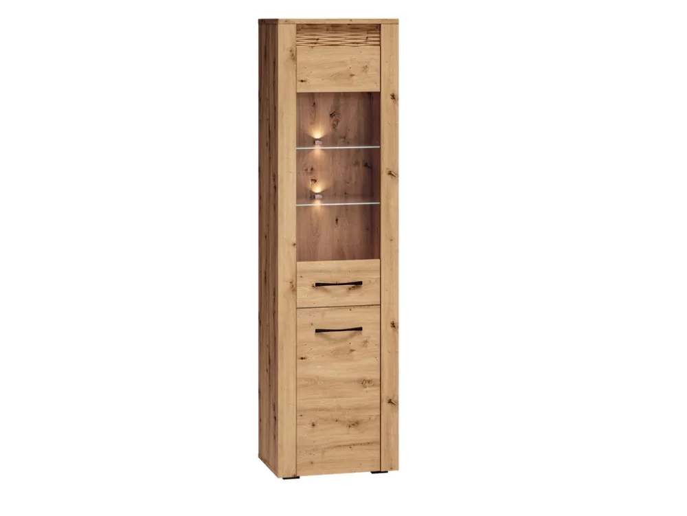 Jeśli szukasz eleganckiego, a jednocześnie praktycznego rozwiązania do swojego salonu, nasza witryna o szerokości 55 cm będzie doskonałym wyborem. Jej kompaktowy rozmiar sprawia, że idealnie wpasuje się nawet w mniejsze przestrzenie, jednocześnie oferując mnóstwo miejsca na przechowywanie i ekspozycję.