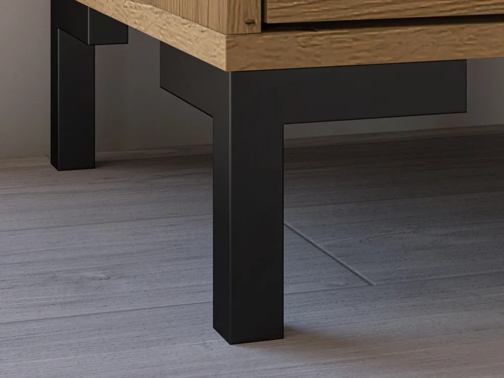 - Nóżki szafy wykonane z tworzywa sztucznego w kolorze czarnym umożliwiają wygodne odkurzanie pod szafą.