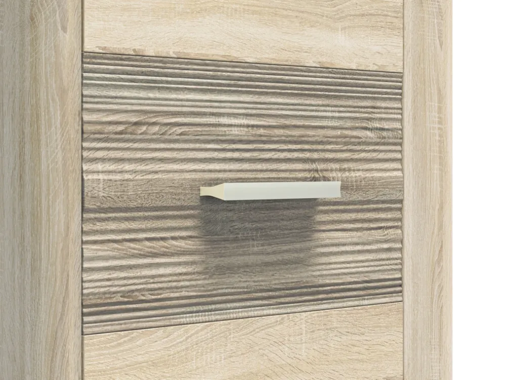 Kolor dąb sonoma to wybór, który wnosi do wnętrza naturalny urok i ciepło. Jego neutralny, a jednocześnie wyrazisty odcień doskonale komponuje się z różnymi stylami aranżacji, od nowoczesnych po bardziej tradycyjne. Szafa została wykonana z wysokiej jakości materiałów, co zapewnia jej trwałość i estetyczny wygląd przez wiele lat.