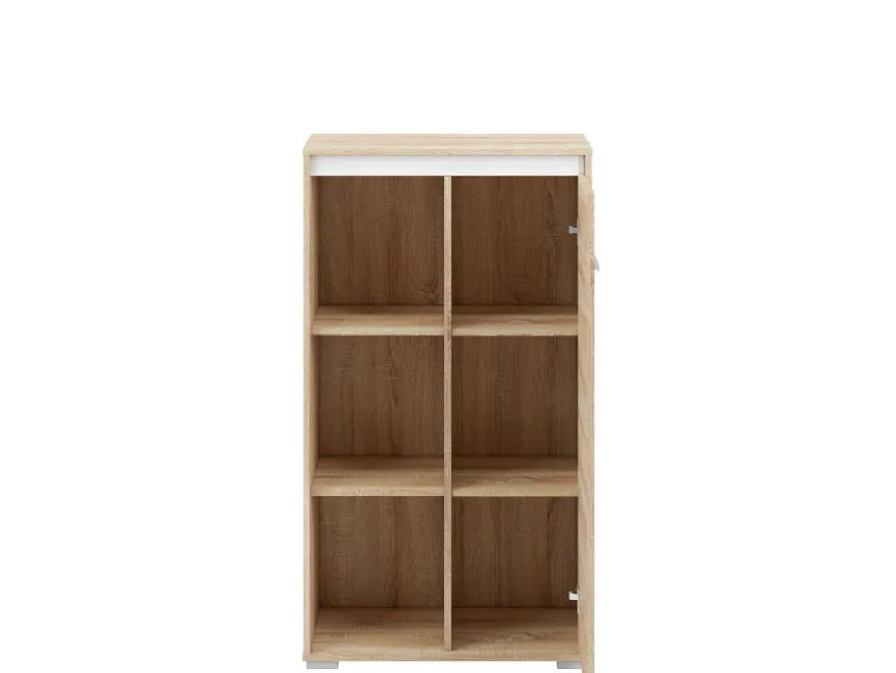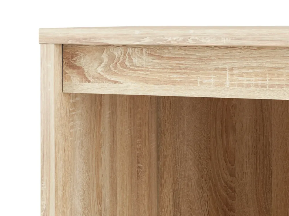 Ta kompaktowa komoda została zaprojektowana z myślą o optymalnym wykorzystaniu przestrzeni. Po lewej stronie znajdują się trzy otwarte półki, które są idealne do eksponowania dekoracji, książek czy codziennie używanych przedmiotów. Ich otwarta forma sprawia, że zawsze masz łatwy dostęp do tego, czego potrzebujesz.