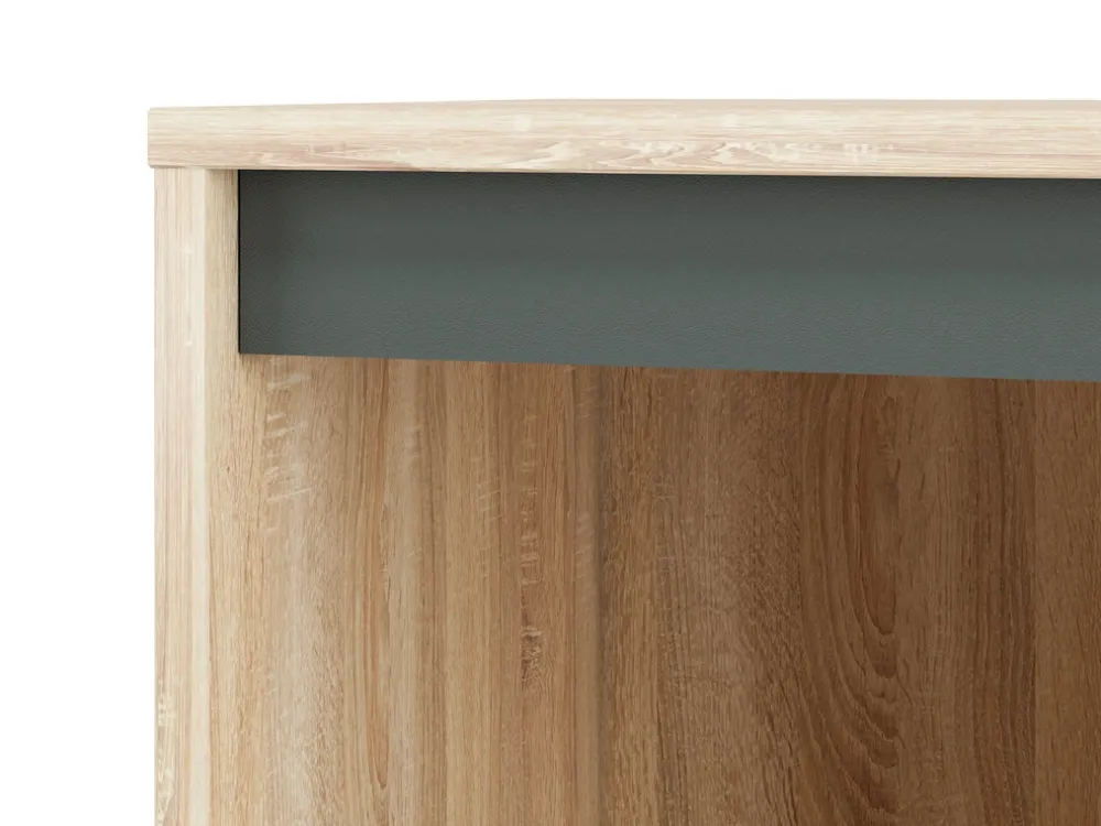 - Obrzeża zostały estetycznie wykończone okleiną ABS. Okleina ABS to sposób na estetyczne wykończenie mebla, dodatkowo gwarantuje odporność na uszkodzenia spowodowane obtarciami.