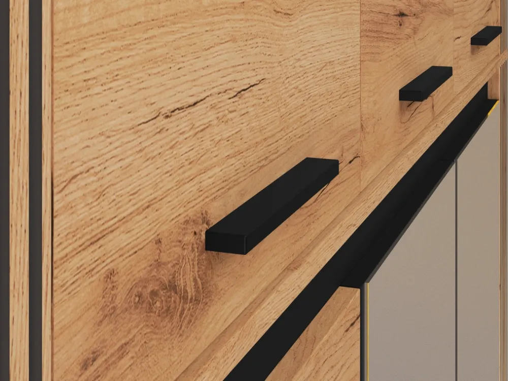 - Kolorystyka: Dąb Craft Złoty + czarne uchwyty