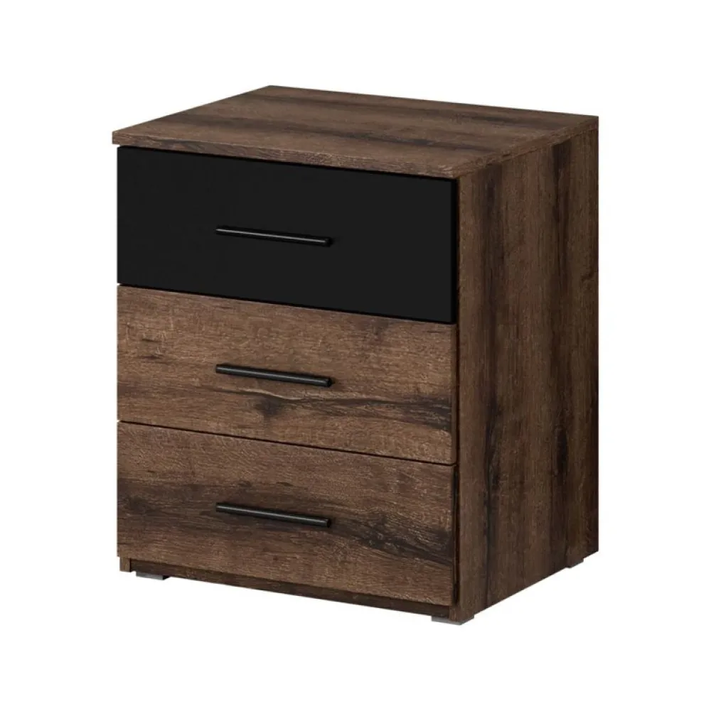 Prosta i funkcjonalna szafka nocna z trzema szufladami