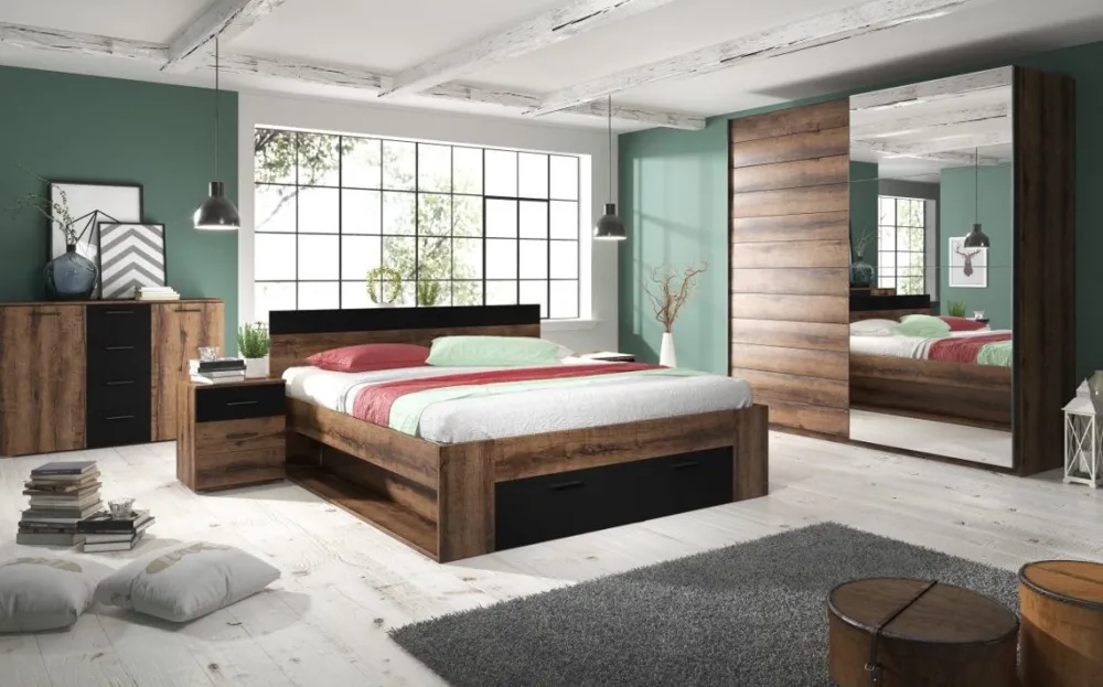 Dzięki meblom do sypialni BETA stworzysz wymarzoną przestrzeń swojej sypialni, do której chętnie wrócisz. Jeżeli lubisz ciemniejsze aranżacje, nie przejdziesz obojętnie obok koloru dąb monastery z czarnym matem.